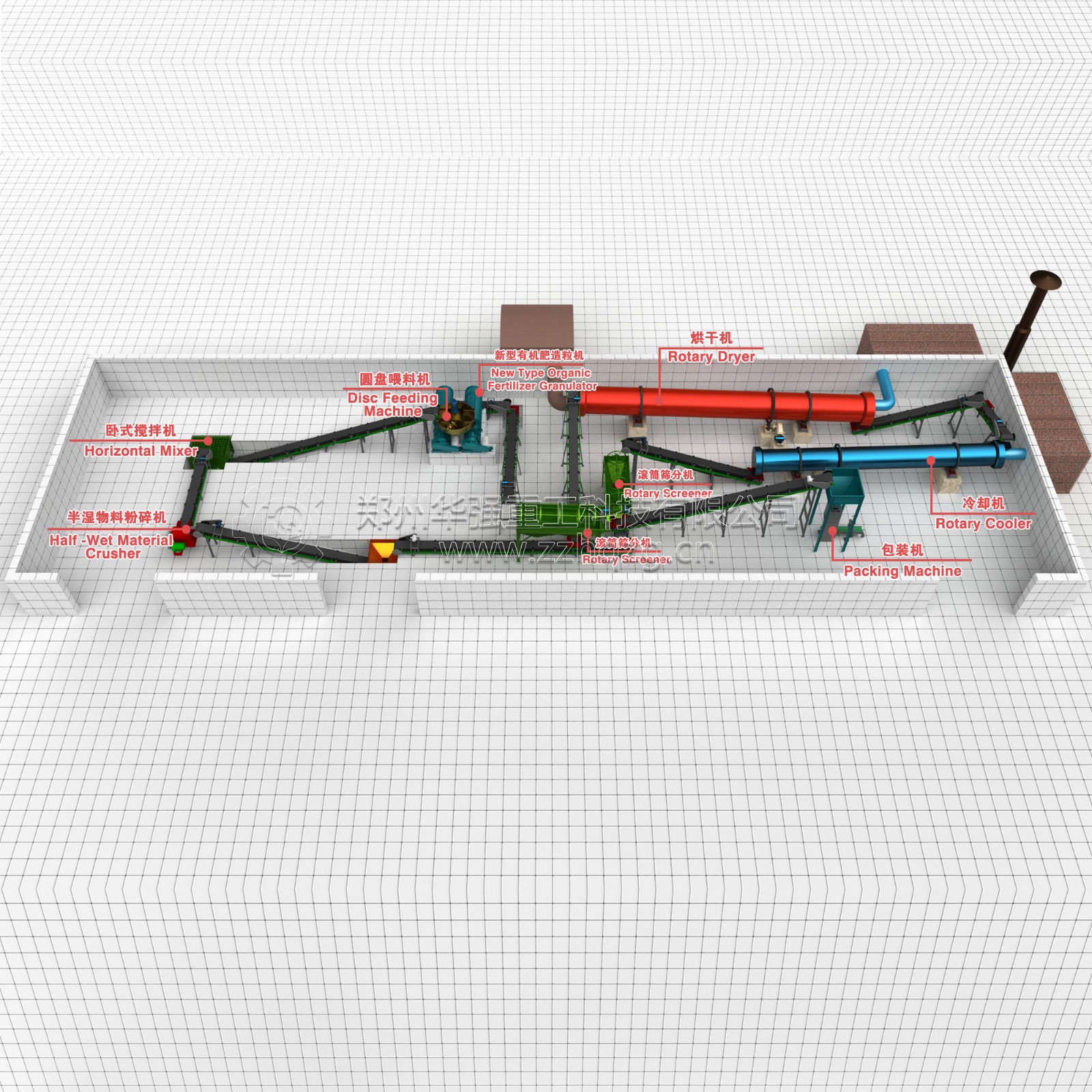 ①原料發(fā)酵---②原料電腦皮帶秤自動(dòng)配料----③破碎、混料-----④圓盤(pán)造粒、滾筒造粒-----⑤烘干機(jī)烘干有機(jī)肥顆粒---⑥冷卻機(jī)冷卻有機(jī)肥顆粒-----⑦篩分機(jī)篩分出合格有機(jī)肥顆粒-----⑧包膜機(jī)涂膜顆粒,更光滑----⑨包裝秤自動(dòng)灌裝有機(jī)肥顆粒---⑩封口